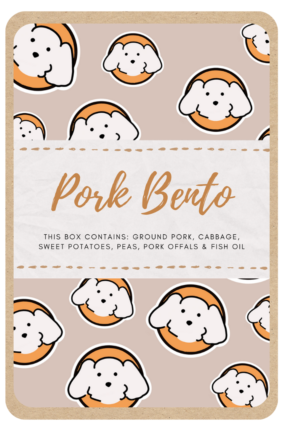 Pork heart, Pork, Cabbage, Sweet potatoes, Peas, Pork liver, Pork Kidney, Fish Oil, Minerals (Calcium Hydrophosphate, Calcium Carbonate, Salt, Potassium Chloride, Magnesium Sulphate, Zinc Proteinate, Copper Proteinate, Manganese Proteinate, Potassium Iodide), Vitamins (Vitamin E Supplement, Thiamine Mononitrate, Vitamin D Supplement)